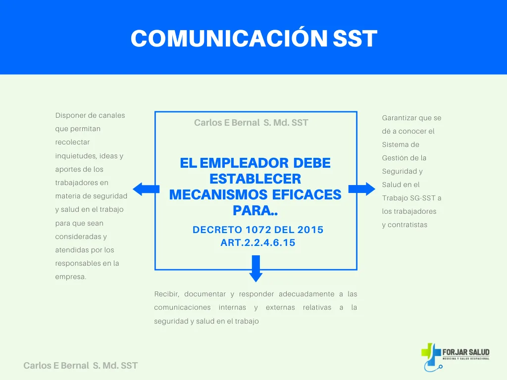 Se deben contar con mecanismos para recibir documentar y responder las comunicaciones internas y externas garantizando además que se dé a conocer el SG-SST a los trabajadores y contratistas; se debe también contar con mecanismos que permitan recoger inquietudes, ideas y aportes respecto al SG-SST.