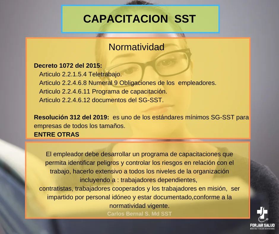 El empleador definirá los requisitos de conocimiento y práctica en seguridad y salud en el trabajo necesarios para sus trabajadores, también debe adoptar y mantener disposiciones para que estos los cumplan en todos los aspectos de la ejecución de sus deberes u obligaciones, debe ser revisado mínimo 1 vez por año, además todo empleado sin importar el tipo de contratación recibirá una inducción antes de iniciar sus labores dedicada a la identificación de peligros y riesgos así como lo concerniente a los accidentes laborales y enfermedad laboral.